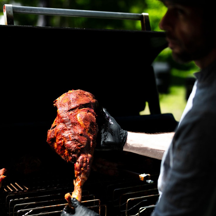 Des recettes originales, créées par passion avec des experts culinaires, au feu de bois. Des cuissons dans la plus pure tradition du LOW & SLOW, un fumage à chaud très long, à basse température — une méthode rare dans la région, que nous sommes les seuls à maîtriser à ce niveau.