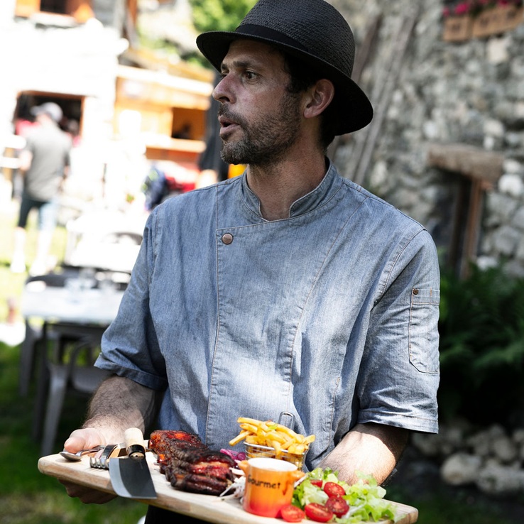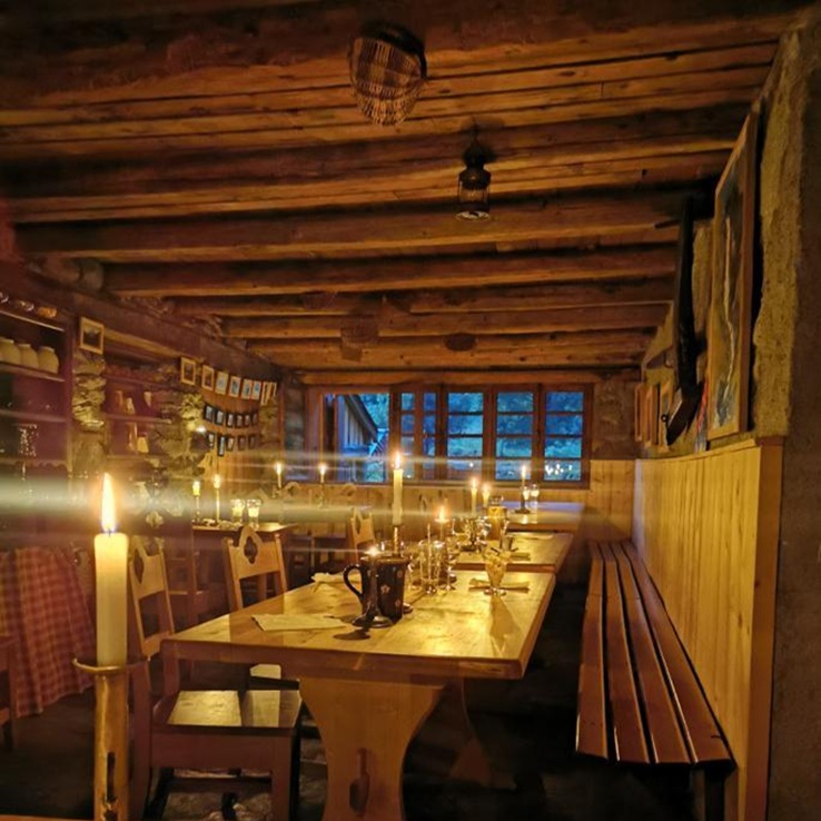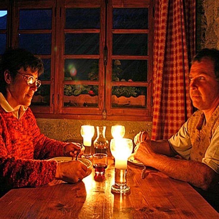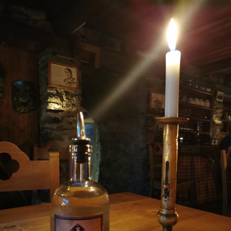 Pas de plat unique à faire passer. Vous commandez votre repas à la réservation, chacun selon ses préférences. Vous serez servis à table individuellement dans une salle sans électricité. Manger aux bougies lors d'une étape en refuge, c’est sans doute une expérience qu'on n'oublie pas.