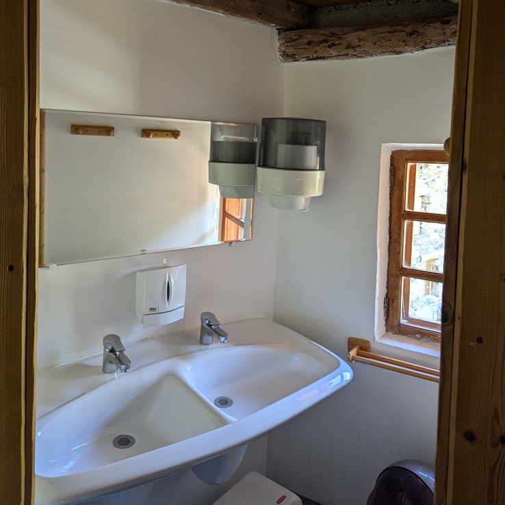 Vous avez accès à toutes les installations du refuge : douches, sanitaires, salle commune, repas, électricité, internet.
