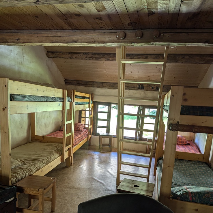 Les sanitaires sont en bas en traversant le dortoir — pensez à prendre une petite lampe si vous vous levez la nuit.
