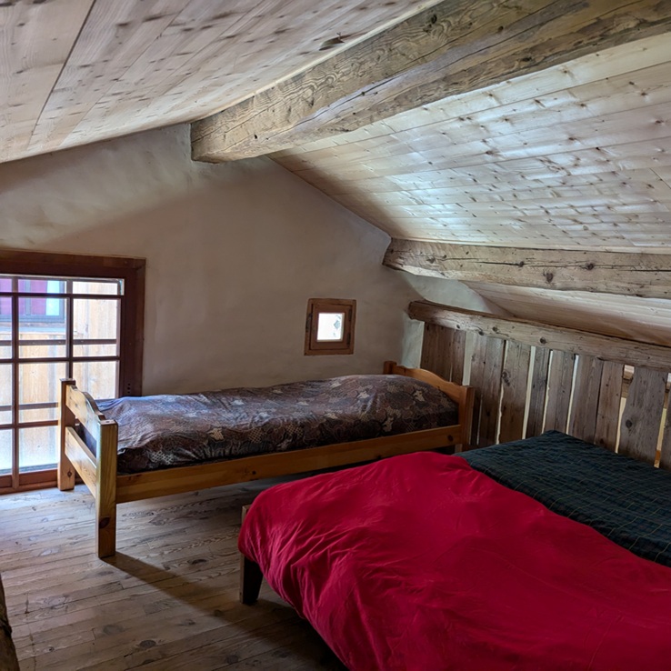 Vous cherchez une touche d’originalité ? La mezzanine offre une ambiance cabane sous les toits du refuge.