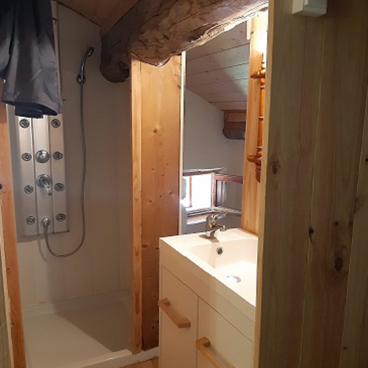 Un ancien logement du gardien sous les toits transformé en petit nid douillet, une douche privative, un WC indépendant et un petit lavabo.